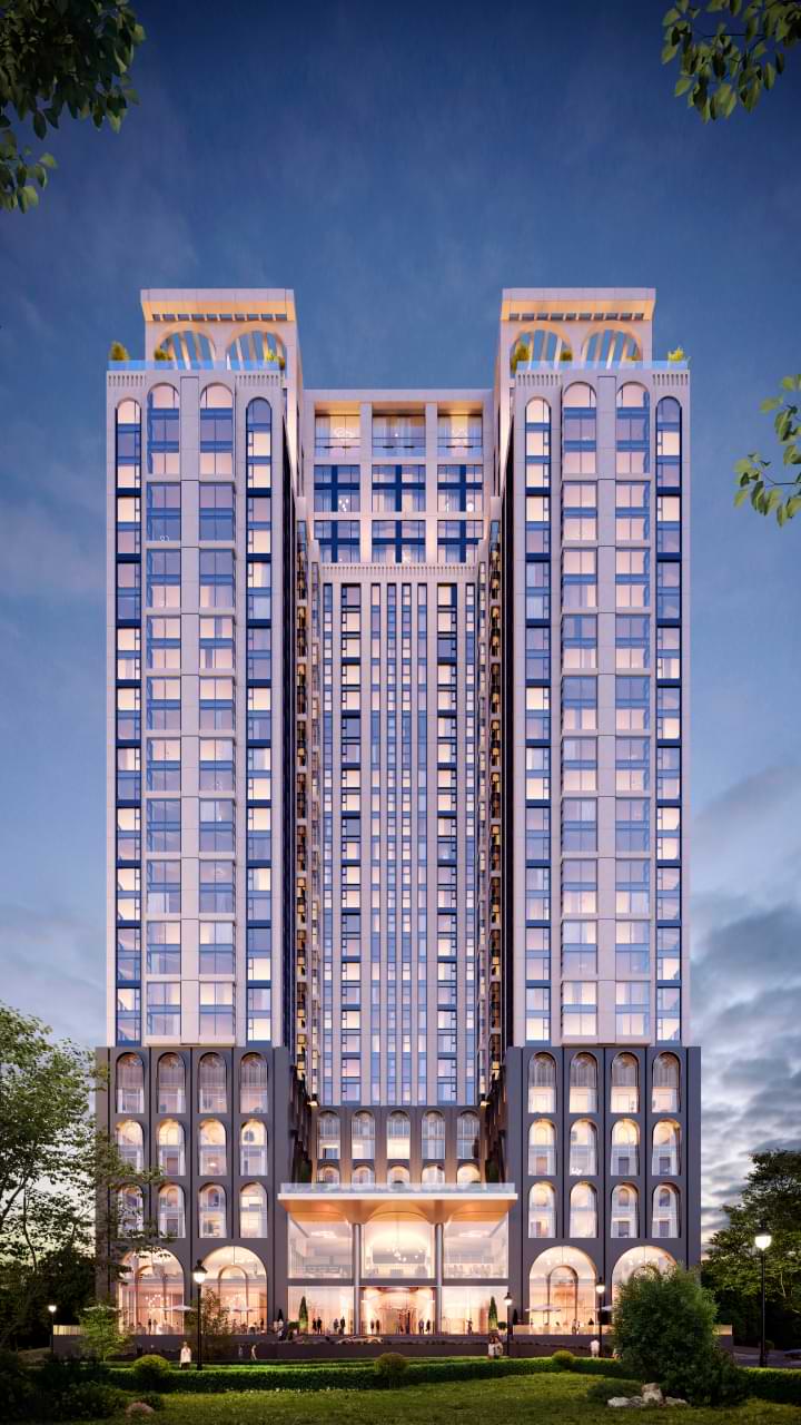 The spectacular building towers over its surroundings and allows you to enjoy stunning views from the panoramic windows of the residential apartments in three design styles