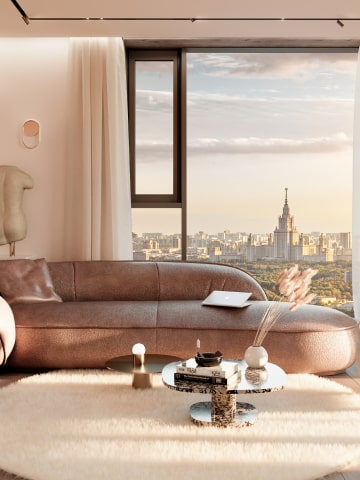 THE MAJESTIC AND REFINED STRUCTURE OF POKLONNAYA 9 DOMINATES OVER ITS SURROUNDINGS, ITS FLOOR-TO-CEILING WINDOWS LETTING LIGHT INTO THE APARTMENTS AND PROVIDING THE RESIDENTS WITH SPECTACULAR VIEWS OF SPARROW HILLS, THE MOSCOW CITY INTERNATIONAL BUSINESS CENTER AND VICTORY PARK.