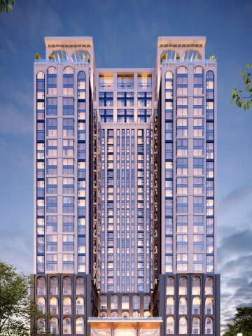 The spectacular building towers over its surroundings and allows you to enjoy stunning views from the panoramic windows of the residential apartments in three design styles