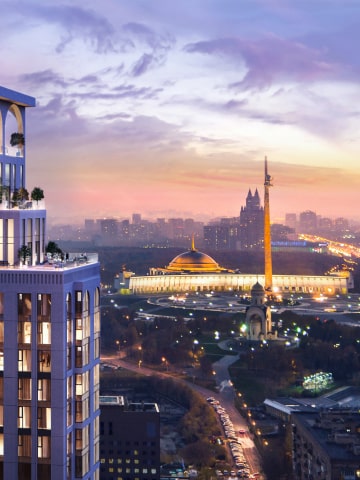 THE MAJESTIC AND REFINED STRUCTURE OF POKLONNAYA 9 DOMINATES OVER ITS SURROUNDINGS, ITS FLOOR-TO-CEILING WINDOWS LETTING LIGHT INTO THE APARTMENTS AND PROVIDING THE RESIDENTS WITH SPECTACULAR VIEWS OF SPARROW HILLS, THE MOSCOW CITY INTERNATIONAL BUSINESS CENTER AND VICTORY PARK.